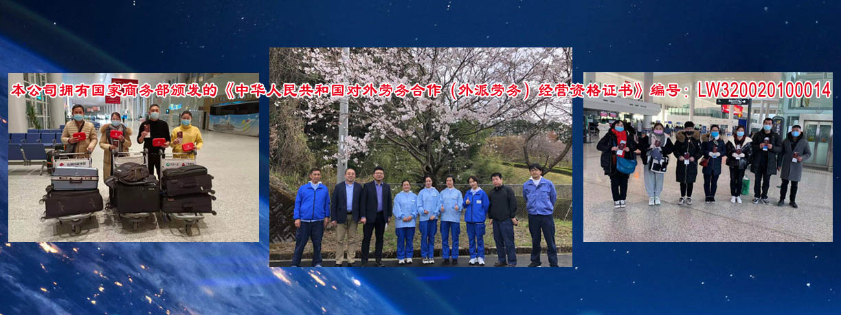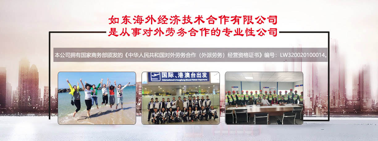 是從事對外勞務合作的專業(yè)性公司,本公司擁有國家商務部頒發(fā)的《中華人民共和國對外勞務合作(外派勞務)經(jīng)營資格證書》編號:LW320020100014。從一九九五年開展勞務合作以來,積極開拓進取,先后向日本、加拿大、新加坡、韓國等國家派遣勞務人員近1萬5千余人。勞務合作行業(yè)主要有服裝(車工、裁剪、整燙、制板、維修、車間管理)、針織業(yè)(織布、漂染、針織、橫機、套口羊毛衫工)、建筑工程(技術(shù)人員、瓦工、鋼筋工、拌灰工、木工、油漆工、電工、鋁合金工、水暖工等)、機械工(銑床、車床、沖床、鉆床、鑄造等)電焊工(壓力容器、亞弧焊、建筑設備安裝、船舶、管道工)、遠洋捕撈(職務船員、普通漁工、水手),高級廚師(川菜、粵菜、京菜、淮揚菜)、電子裝配、園藝、蔬菜種植、桑蠶飼養(yǎng)、海、淡水養(yǎng)殖、護士、翻譯(英語、日語、韓國)等,日本辦事處設在日本東京、廣島主要負責管理和服務日本研修生及貿(mào)易方面的聯(lián)絡工作,國外辦事處和中國公司現(xiàn)有工作人員25人,專職勞務工作人員10人,從事勞務行業(yè)均10年以上,翻譯、培訓教師5人,外教2人,會計3人,業(yè)務人員5人。